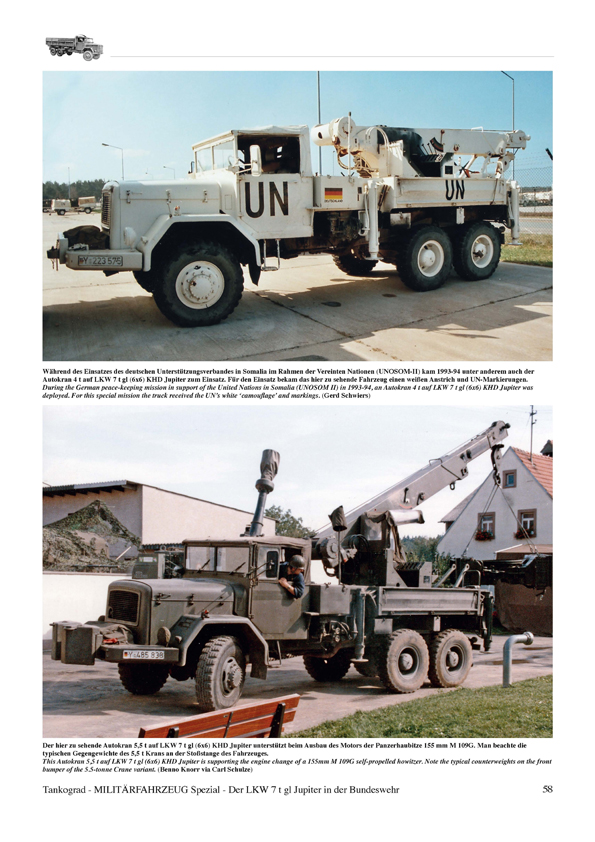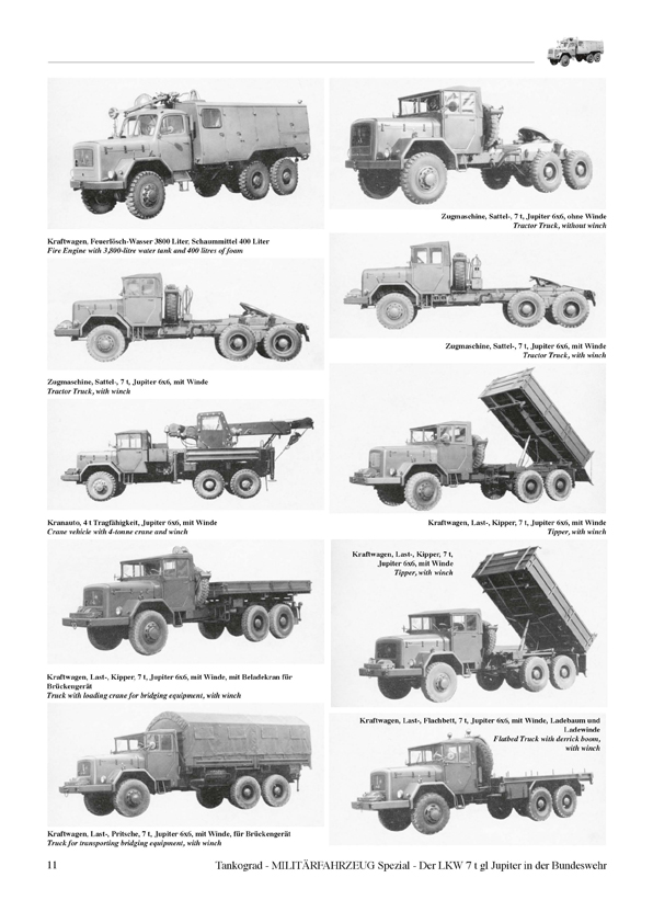 The LKW 7 t gl (6x6) KHD Jupiter is one of the legends of early Bundeswehr military trucks. It primarily served in the role of transporting materials with a payload of 7 tonnes either on roads or off-road. In addition, there were variants such as a Wrecker, Recovery and Repair, Tractor Truck with shortened wheelbase, Prime Movers for trailers and artillery pieces, Tipper, Fuel Tanker, Fire Engine and other specialised roles.