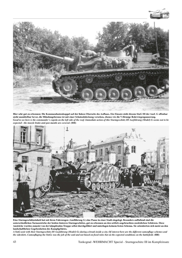The Sturmgeschütz III assault gun began its career as infantry support vehicle intended to destroy field fortifications and machine-gun posts. The changing wartime situation and continued technical upgrades, however, made it one of the most effective and combat-worthy fighting vehicles in German Wehrmacht inventory.