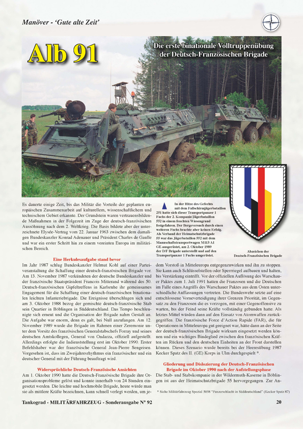 | Manöver ‘Gute alte Zeit’: | Alb 91 Manöver der Deutsch-Französischen Brigade |