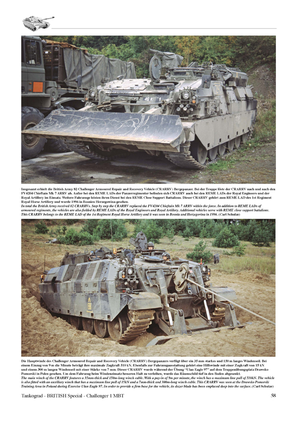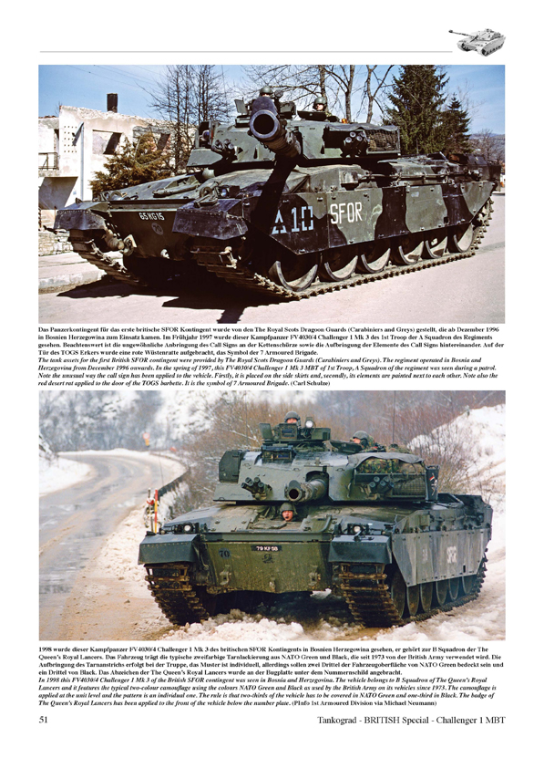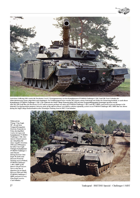 The FV4030/4 Challenger 1 MBT was the last vehicle of its type developed and fielded by the British Army during the Cold War era. Procured as a stop-gap measure in the early 1980s to replace part of the ageing fleet of FV4201 Chieftain MBTs, the new vehicle was intended to battle Warsaw Pact armour on the plains of northern Germany in the event of the Cold War ever turning hot. This publication tells in great detail the development history, describes the technology, Challenger 1 variants Mk 1, 2 and 3, the CRARRV, the Training Tank, the Al Hussein as well as the MBT in action during IFOR, SFOR, KFOR and in Operation Granby.