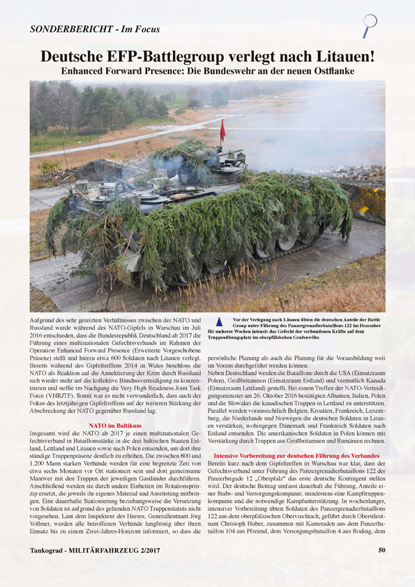 | SONDERBERICHT - Im Focus: | Deutsche EFP-Battlegroup verlegt nach Litauen! |